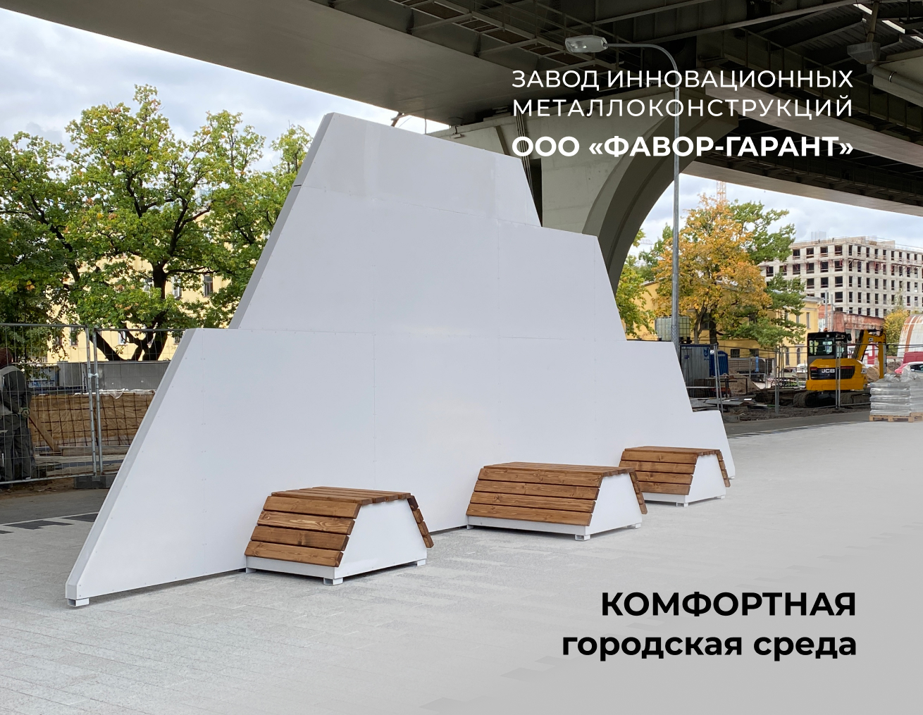 В скамейках для отдыха реализованны бетонные пригрузы, что дает суммарный вес конструкции более 6 тонн. Конструкция устойчива к воздействию различных климатических нагрузок (ветровые, снеговые, гололедные)